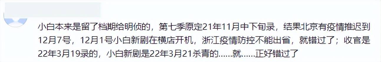 其实白敬亭当初不来录制新一季《明侦》,就已经隐约引起一部分节目观众不满,不过当时他的理由还是挺充分的,《明侦》录制推迟,和他新戏档期撞了,正好错过了。