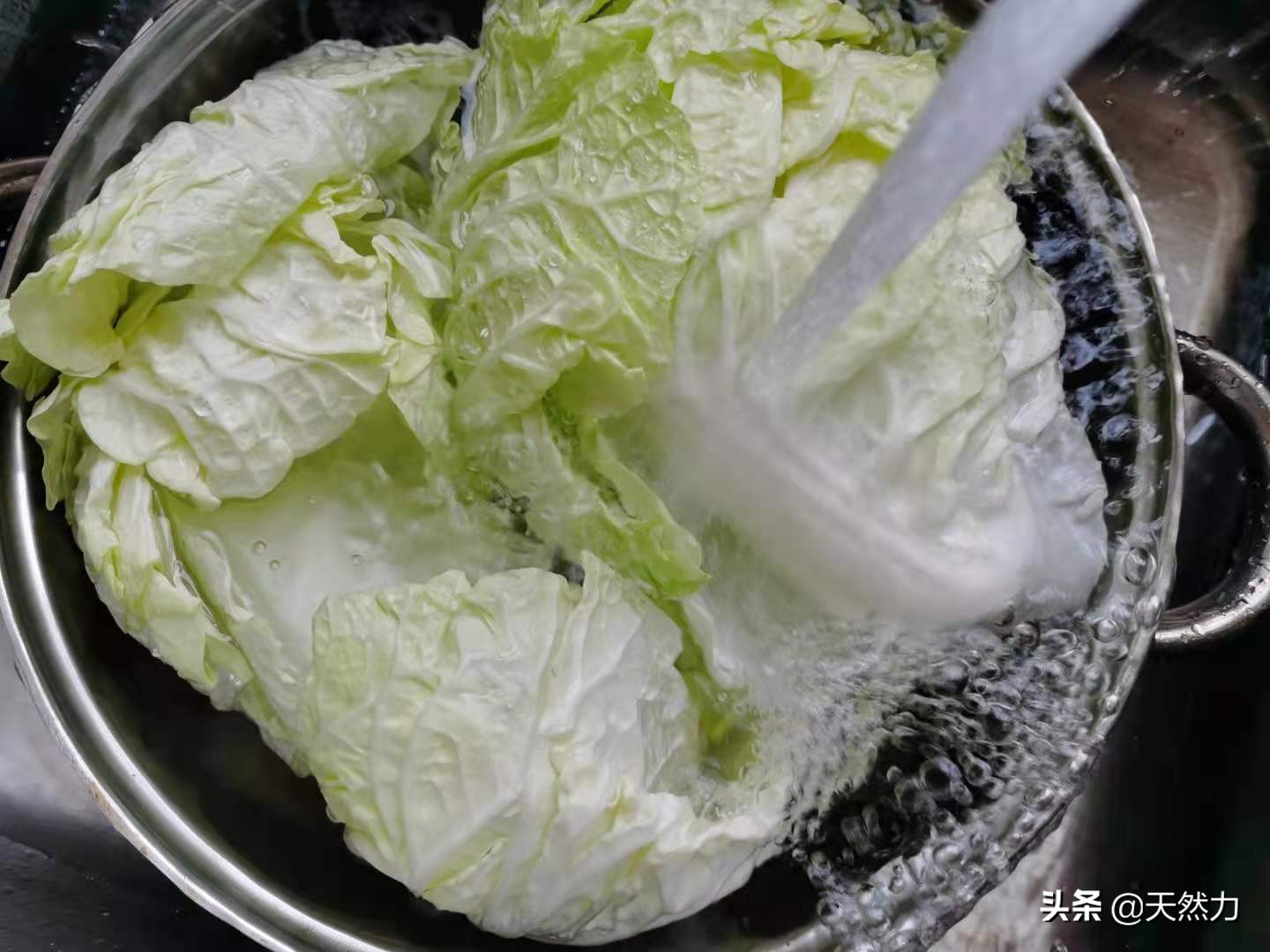 1、在白菜的底部切去一小段,这样就可以轻易地把白菜叶子分开。把白菜叶子放水中多清洗几次洗干净后控水。