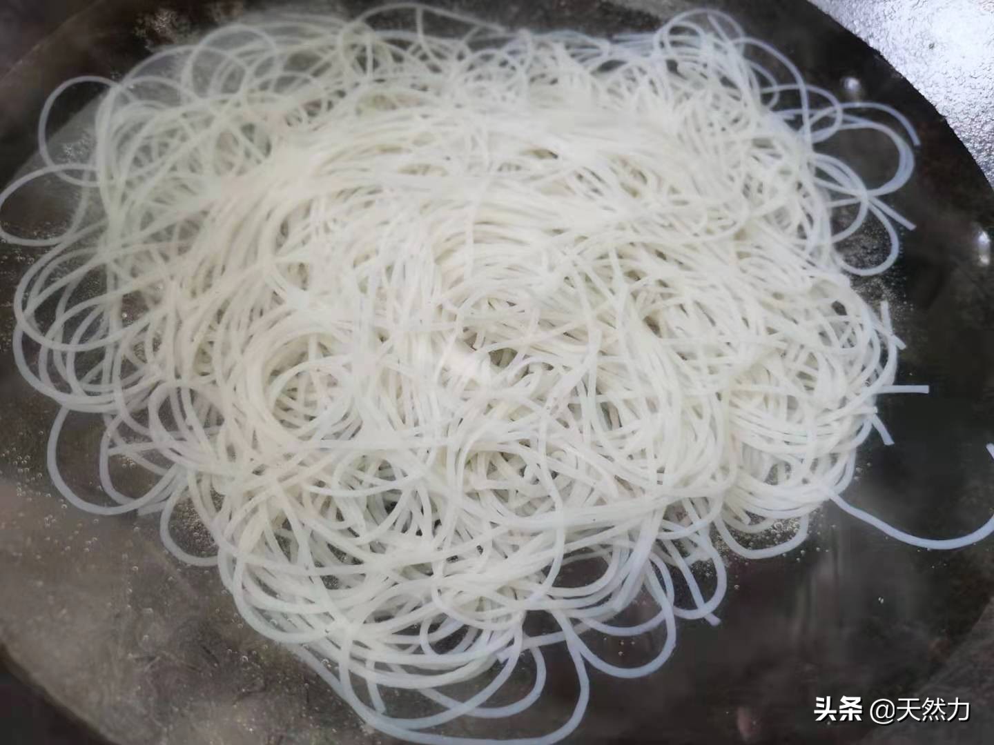 1、起锅烧水,水沸腾后再把粉条放入锅内煮软,这样粉条吃起来的口感就会很滑爽,泡软后的粉条不需要煮太久,最多1分钟就可以捞起控水。粉条是熟制品,所以我们在煮的时候不需要去考虑有没有熟,只要煮软,不会有硬芯就可以。