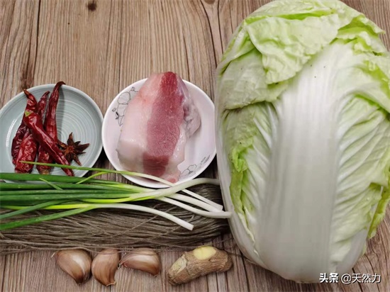 【主料】:大白菜1颗、五花肉200克、红薯粉100克。