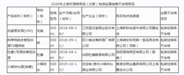 近日,2020年上海市酒类商品(过度)包装监督抽查结果发布,本次抽查了92批次产品,经检验,4批次不合格,皆为包装空隙率不合格。