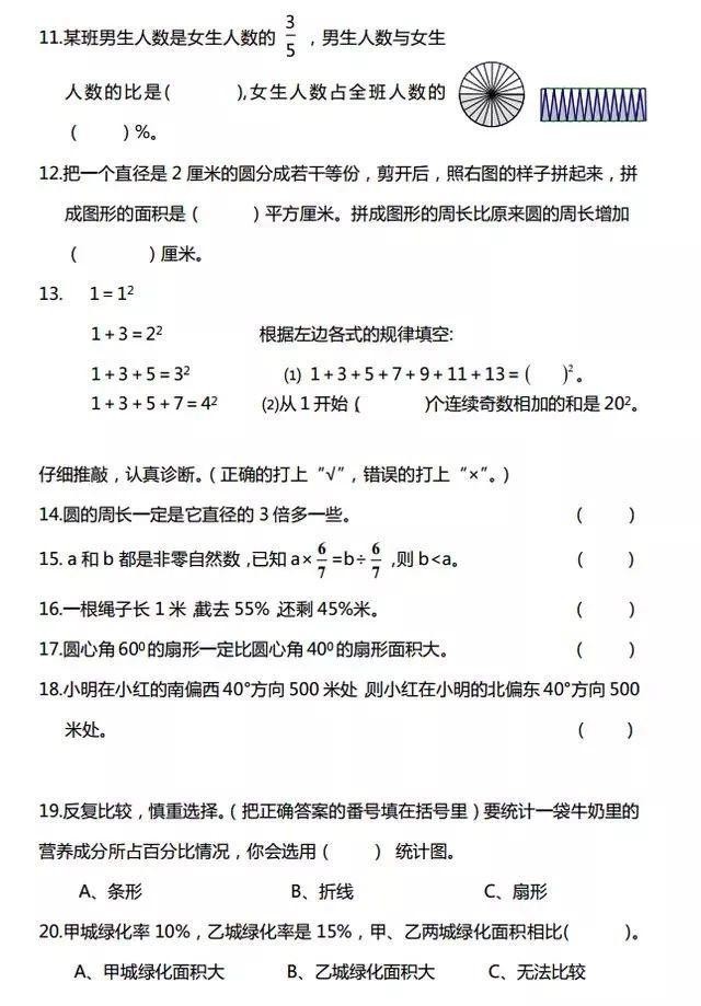 六年级数学经典题100道,暑假务必给孩子练练