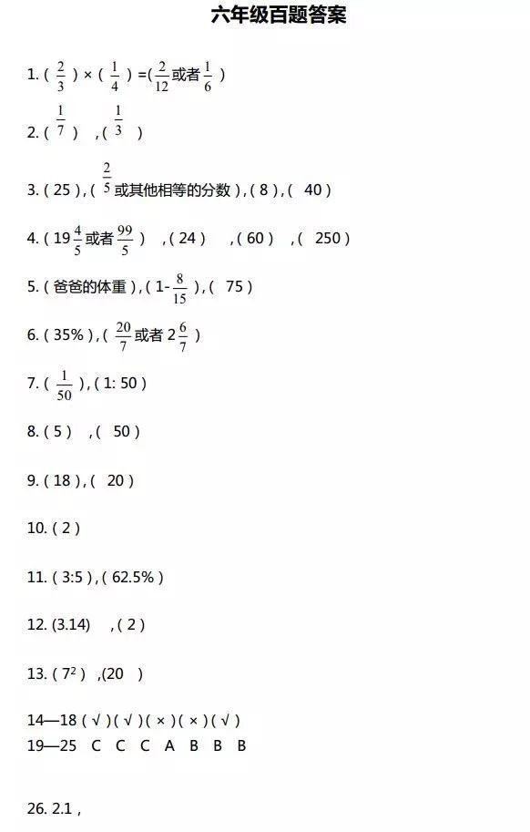 以下这份资料,是何老师精心为同学们整理的六年级常见的100道经典题目,让六年级的同学们能够高效地把握重难点。后面附上参考答案,让孩子快速得到反馈,及时查缺补漏,有需要的家长可以打印一份。