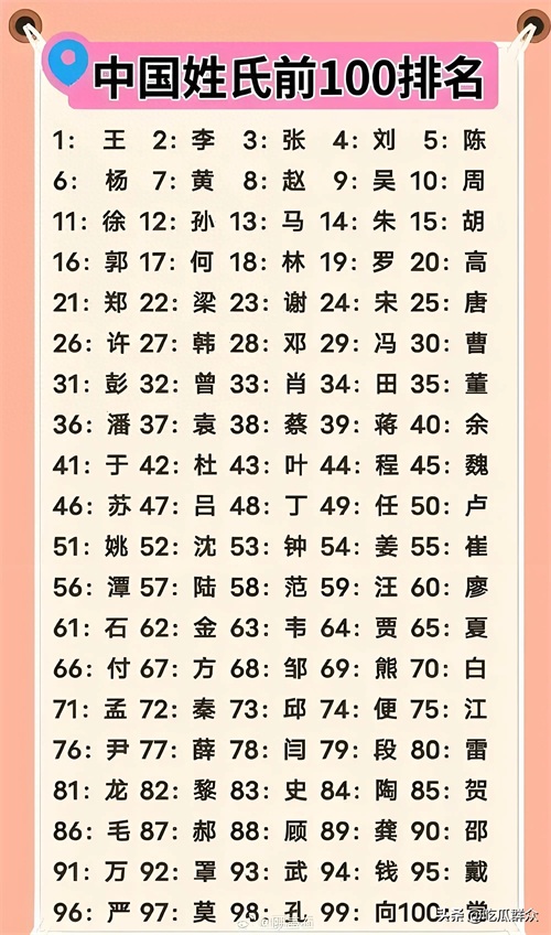全国姓氏排行榜就像一把神奇的钥匙,能让我们洞悉中国人口结构、地域分布和历史变迁。