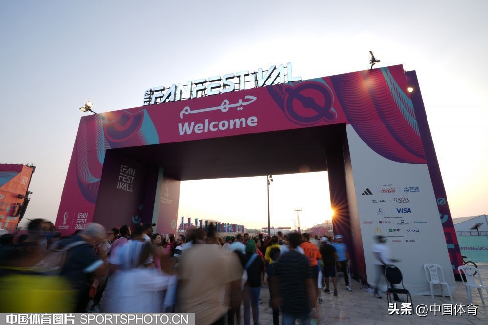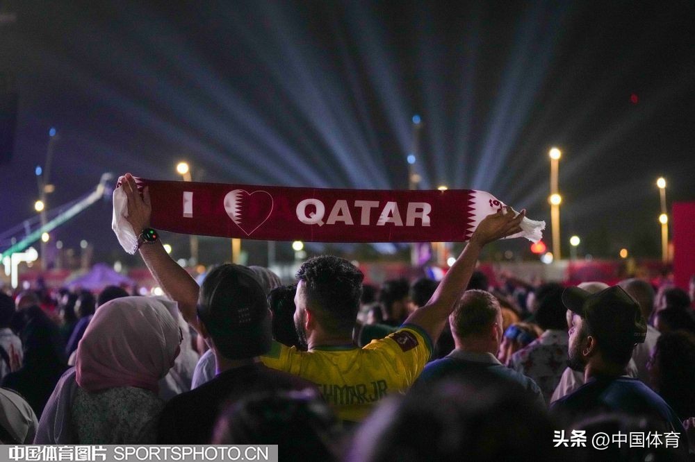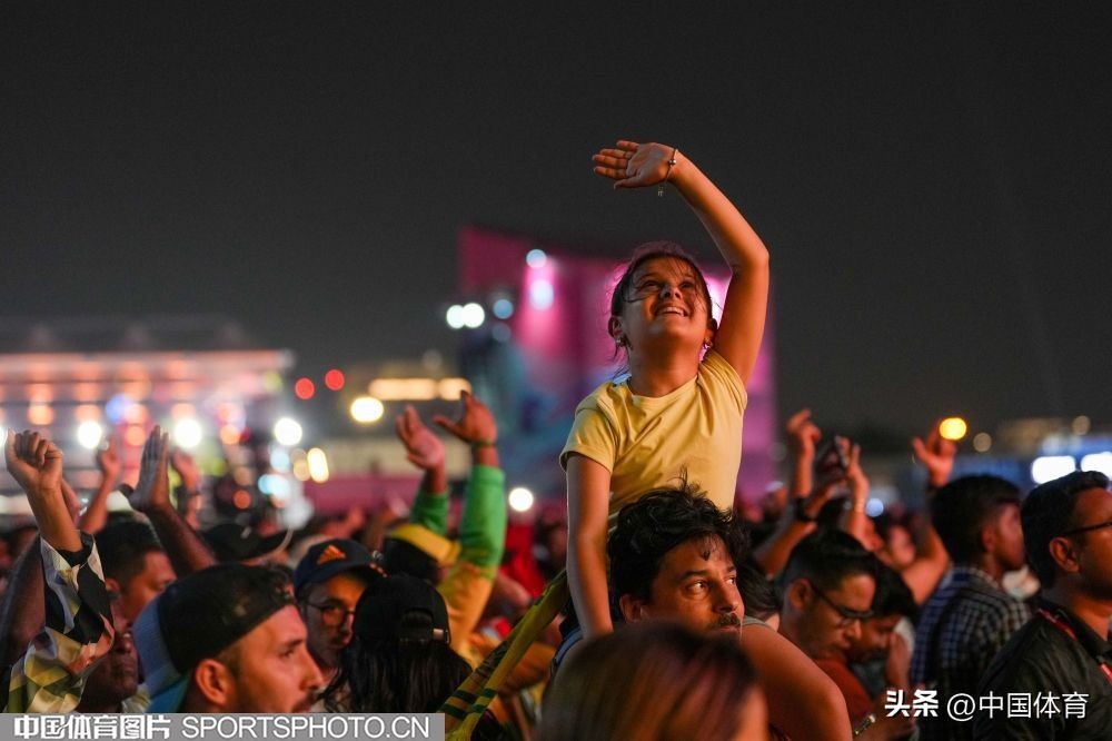 中国体育讯 卡塔尔当地时间2022年11月19日,卡塔尔世界杯球迷节开幕,盛大烟花无人机表演,大力神杯惊现多哈夜空,欢迎全世界球迷。图为各国球迷在球迷节上。(中国体育图片 李翔 摄)