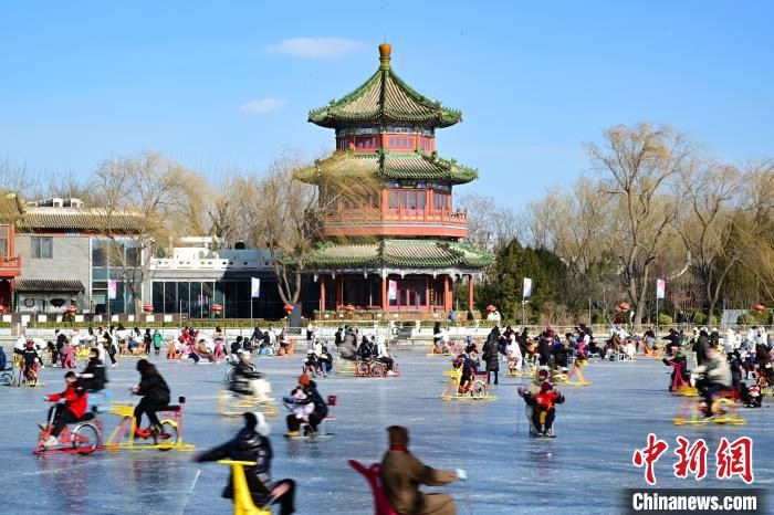 2月4日,春节假期最后一天,游客在北京什刹海冰场滑冰。据悉,北京什刹海冰场将于当日18时停业。中新社记者 田雨昊 摄