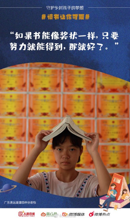 他们说:“我想有好多书可以看”;他们说:“如果书能像奖状一样,只要努力就能得到就好了”…调查发现,当前乡村儿童阅读状况虽比过去明显改善,但和各年龄段孩子的阅读需求适配性不足。明天,世界读书日,为贫困山区孩子添本好书,守护他们的梦想。