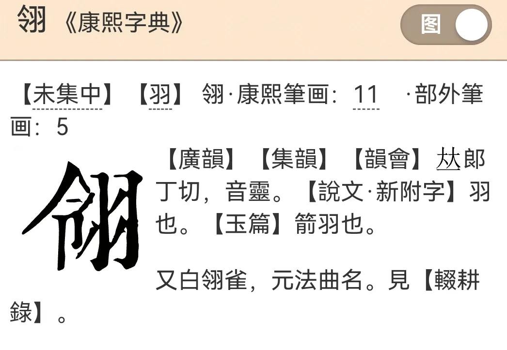 三、“翎”字《康熙字典》解释: