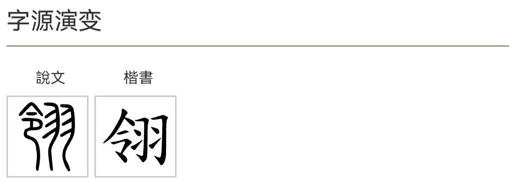五、“翎”字字源演变和字形对比: