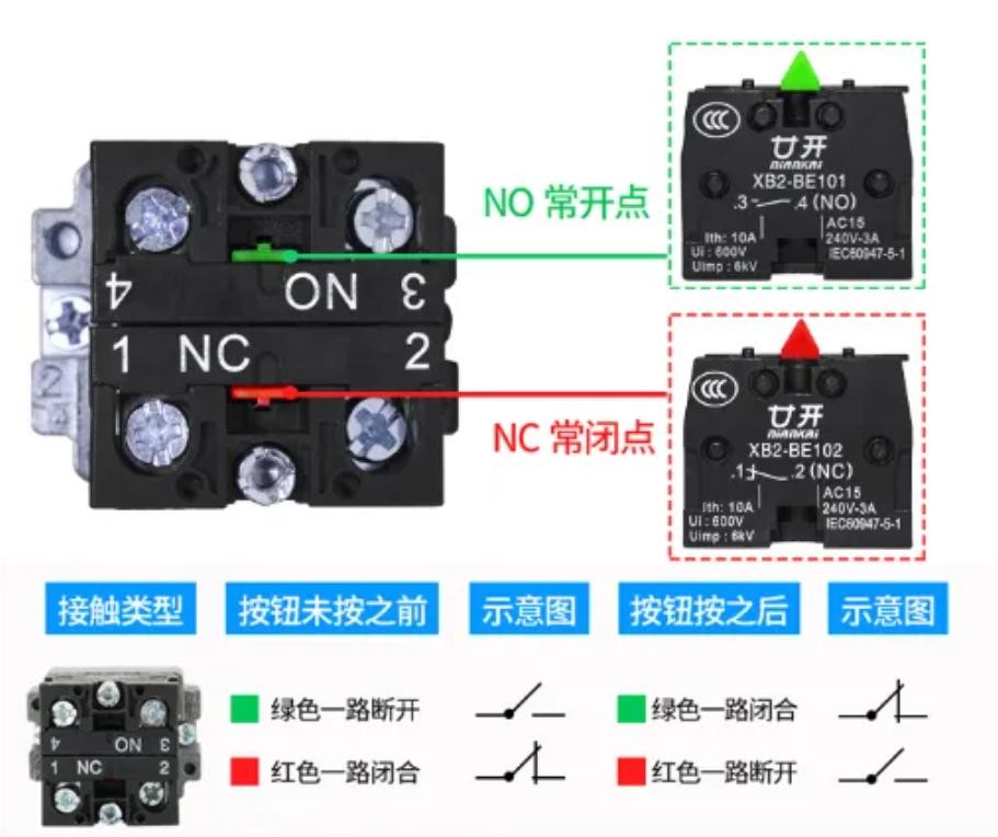 简单解释:常开触点就像家里的门铃按钮,平时是断开的(无力作用),只有按下去(有力作用)才会接通。而常闭触点正相反,平时是接通的,按下去反而断开了。