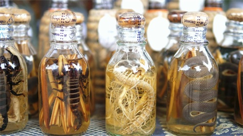 在中医中,蜈蚣也是一种壮阳的药材,虽然补,但可不要乱吃,最常见的是用来泡蜈蚣酒。