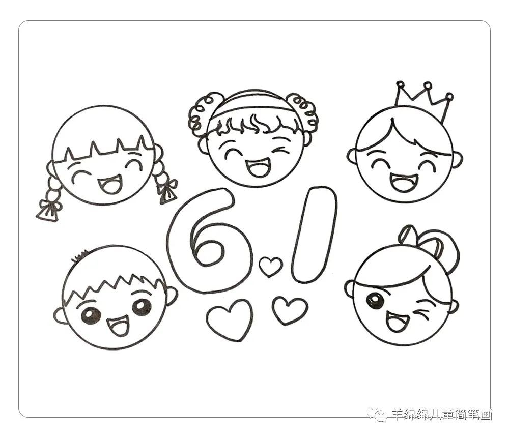 小朋友们~大家好,马上就是六一儿童节啦,我们继续学习画漂亮的儿童节主题的简笔画,通过这幅画,你能学习不同表情、发型的画法,想一想,你还能画出更多的表情和发型吗?