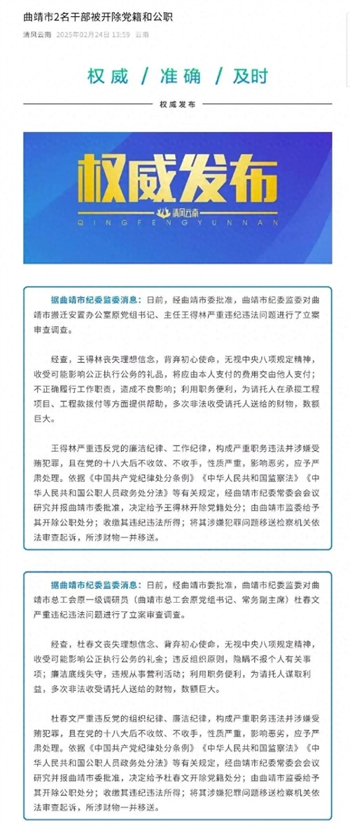 两人的落马,堪称曲靖官场震荡的缩影。2024年7月27日,王得林和杜春文选择主动投案,看似“识时务”,实则是被反腐高压逼得无处可逃。彼时的曲靖,早已是“风声鹤唳”——从副市长、人大主任到能源局长、法院副院长,半年内十余名官员接连被查,连退休多年的老干部都没能幸免。