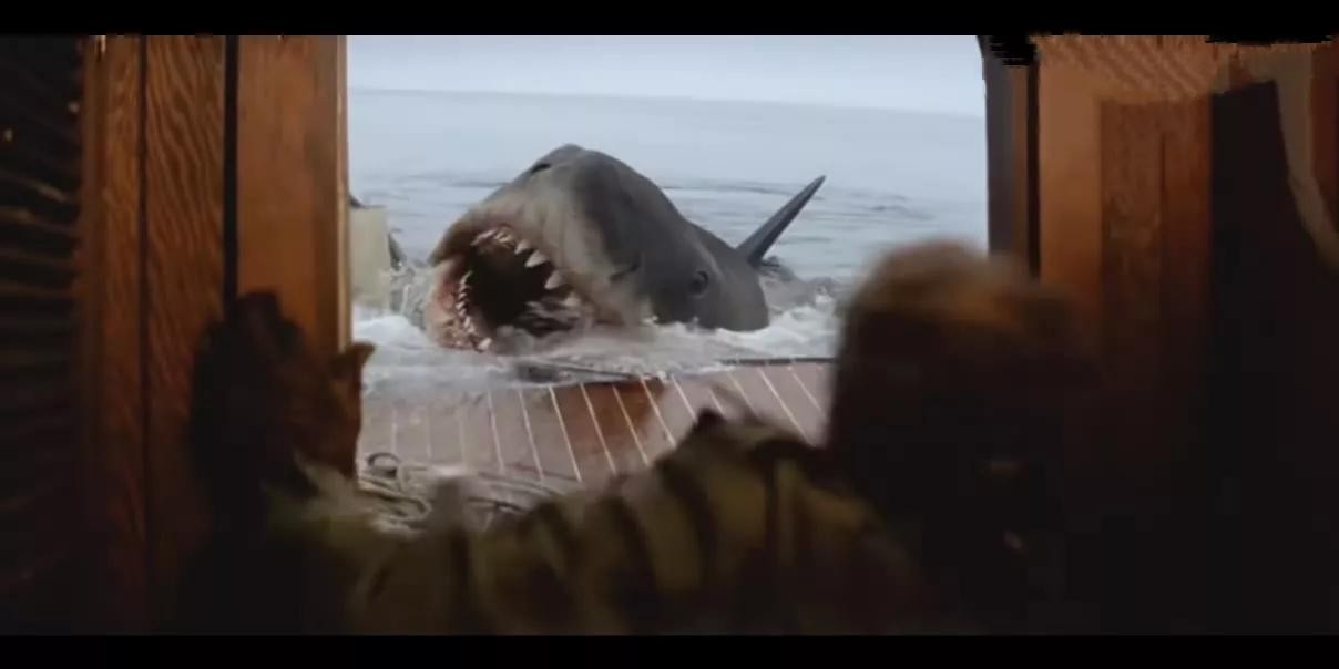 后半段当所有人都葬身巨鲨口中后,女主才开始了与巨鲨的真正搏斗。