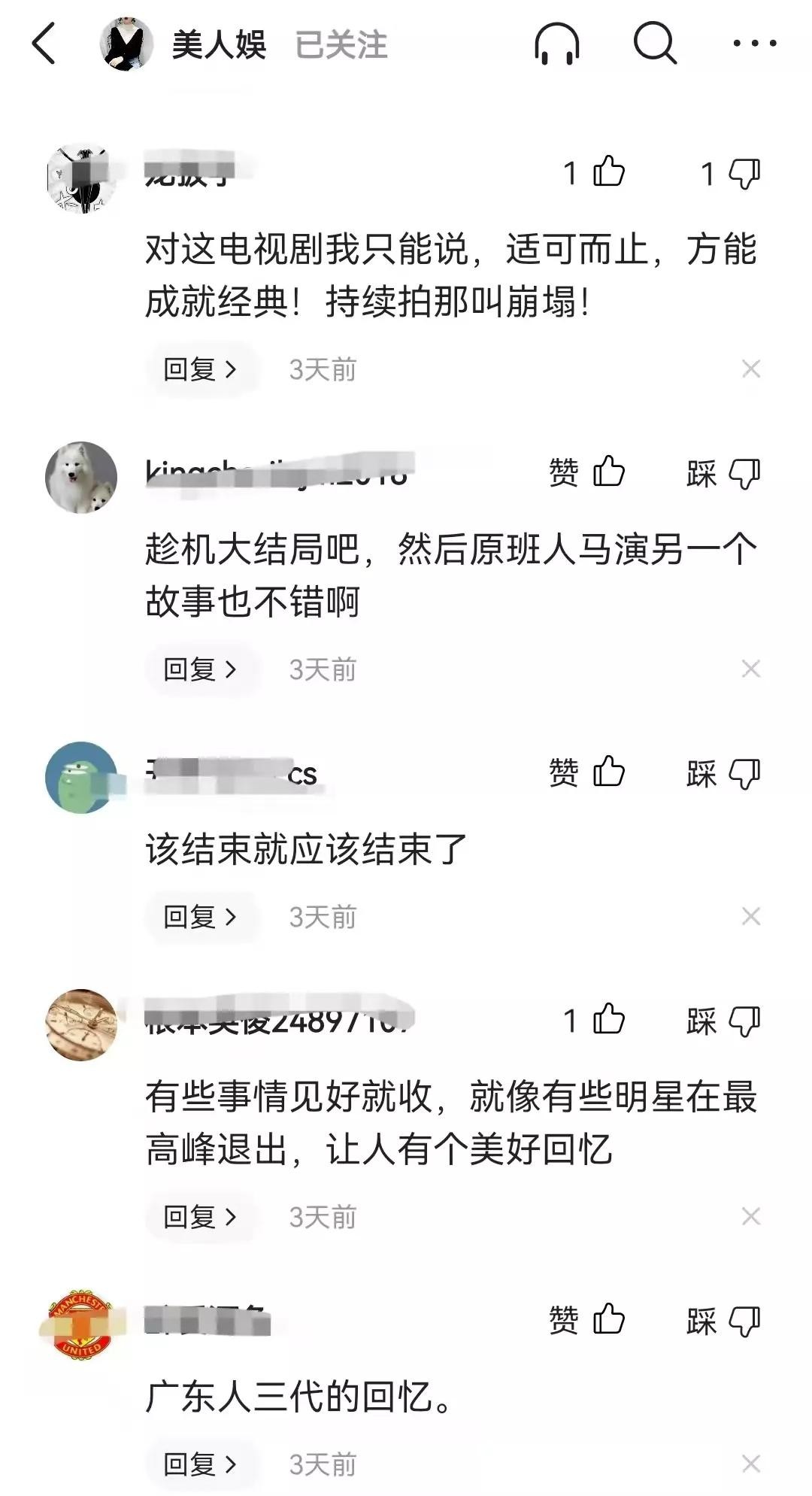 可能是剧组有他们的考量,因为这部电视剧是很不容易才树立的一个“金漆招牌”,谁愿意轻易砍掉一颗“摇钱树”呢?