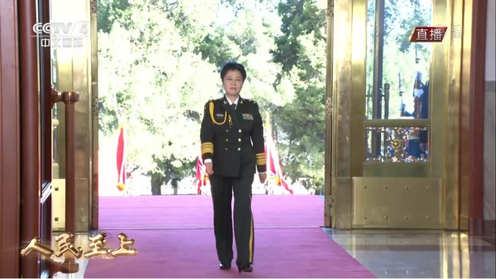 2020年9月8日,一头短发的她,身着军装,迈着正步走向人民大会堂中央。