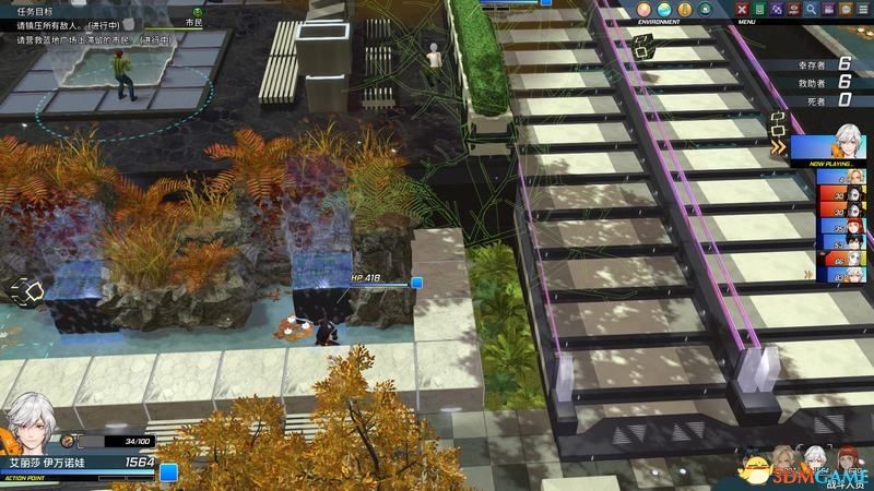 清完水池的敌人不要急着上楼梯,先去地图上方营救剩下的NPC,得到艾丽莎和艾琳的援助。