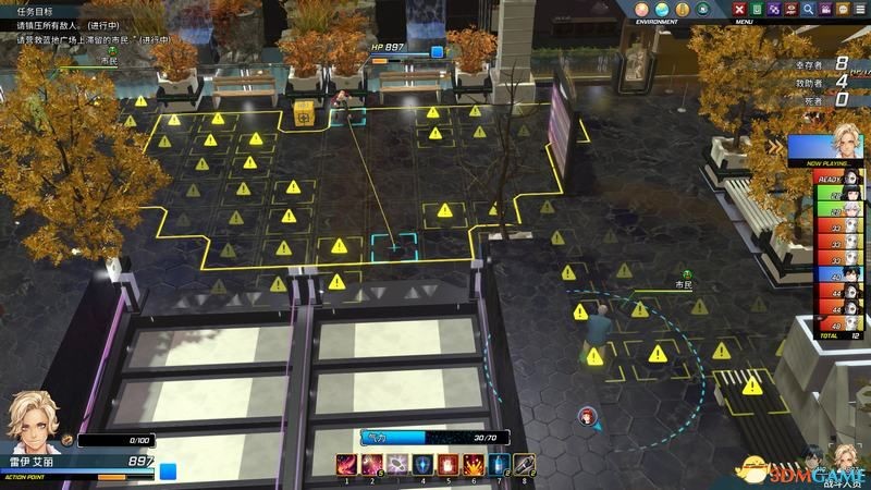 水池中央的平民女孩是个奶妈,需要的话让掉血的队友前去救援可以加血。