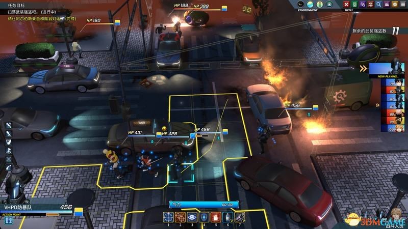 如果命令士兵将场景右边的“电动车充电器”打爆,可以引起连环爆炸,瞬间杀伤一批敌人。