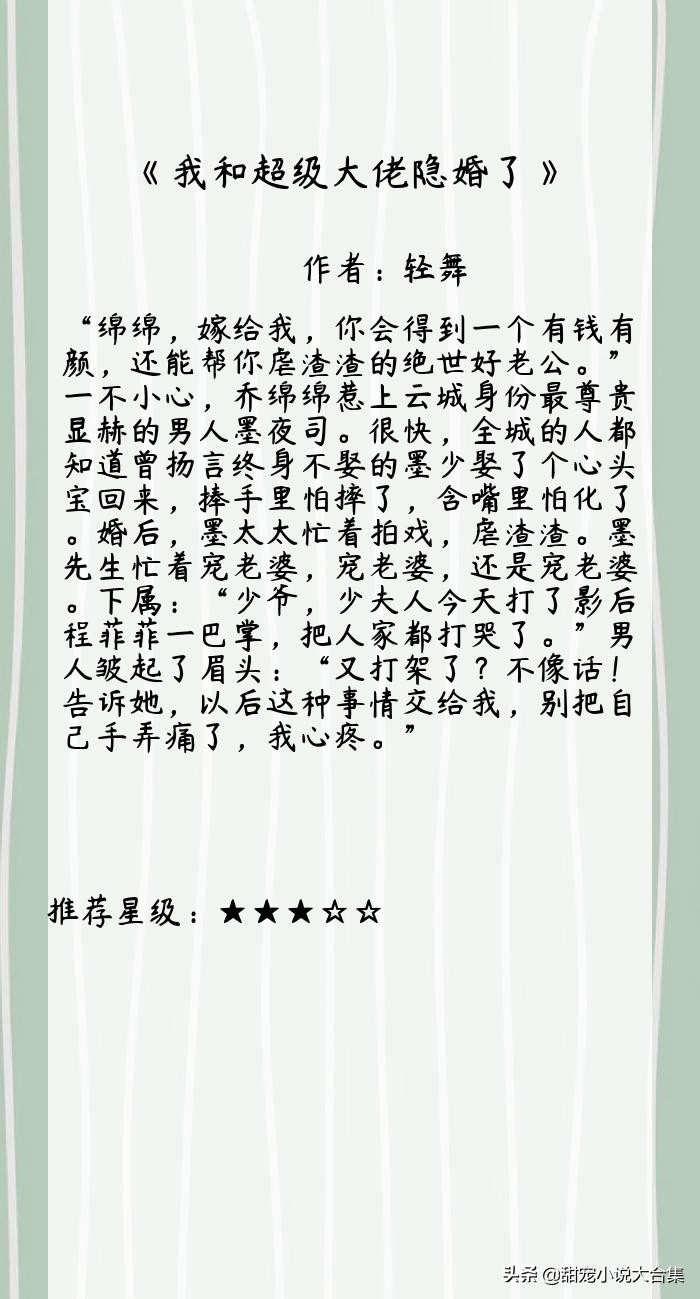 每次分享到最后,莫莫生怕分享的不够,不知道大家有没有找到自己喜欢的。今天分享的这10本有肉有剧情的小说,总体上来说莫莫还是非常满意的,不知道你们觉得怎么样呐!你们最喜欢的小说是哪本呐,欢迎和大家一起分享哈~