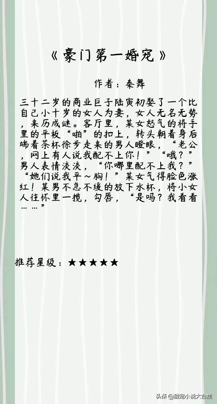 强推!10本有肉有剧情的言情文,《豪门第一婚宠》我超爱