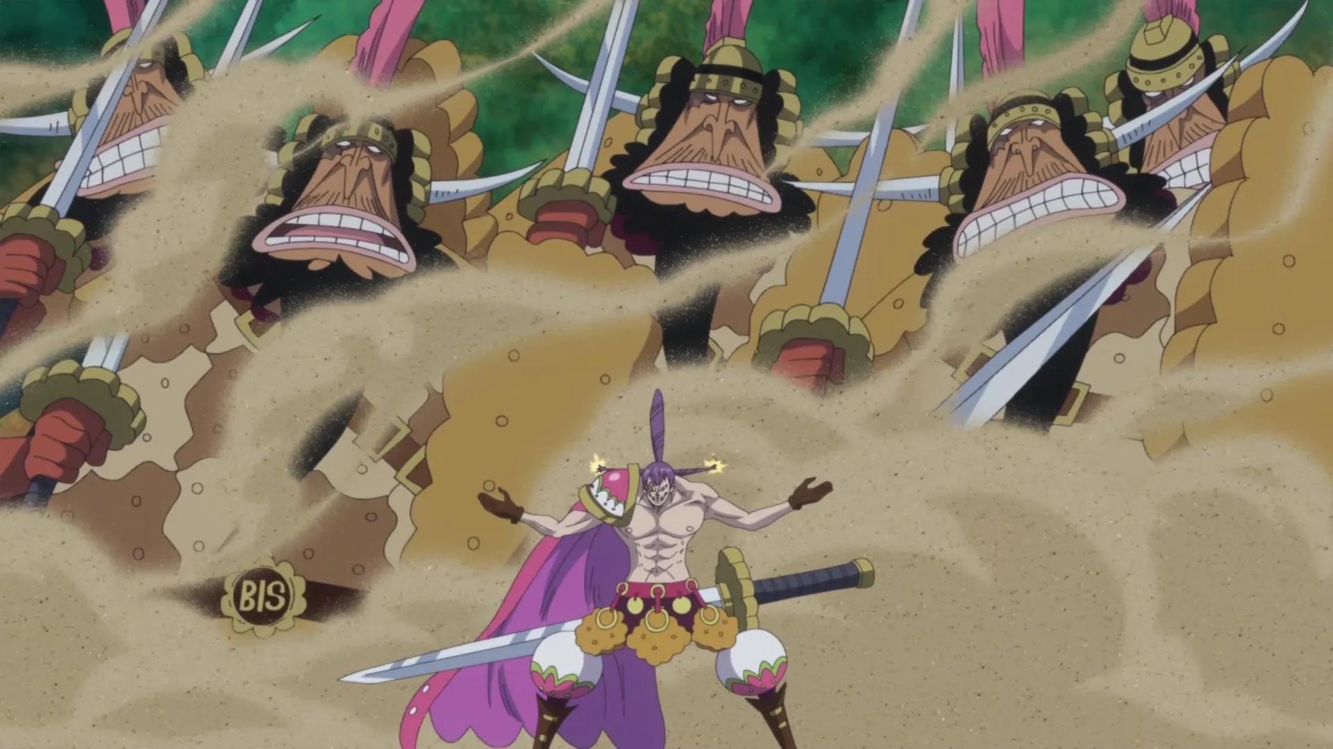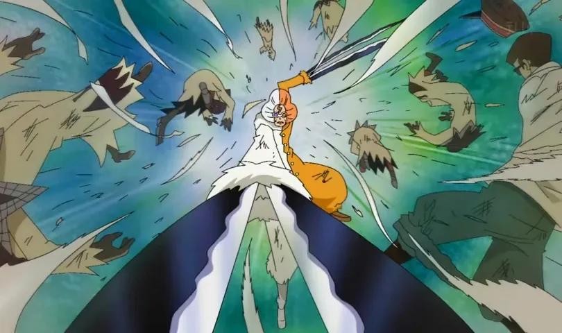果实能力:可以把身体的任何一部分变成刀刃,同时也让皮肤变成跟钢铁一样坚硬。