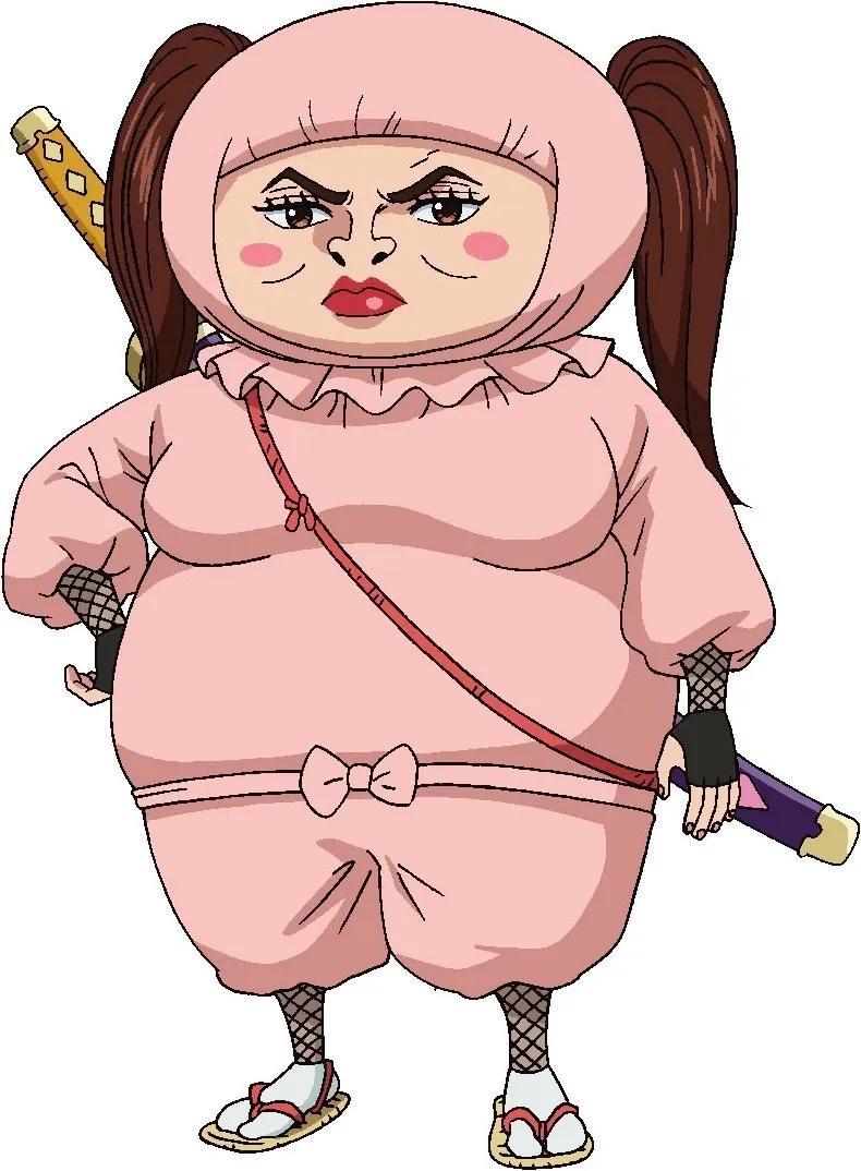 果实能力:能将自己脸上揪下一个可食用的糯米团子,凶猛的动物食用后变得温驯听话;对人造恶魔果实的动物能力者亦有效。
