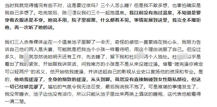 但如果按照杜某说的,这些是 " 教学 ",那半夜爬上女同事的床又是什么 " 职场相处方式 "?
