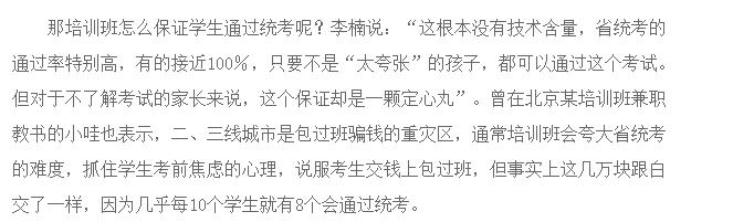 如果艺考班再画点什么 " 包过 " 的大饼,更让学生即便在培训期间遇到不开心的事情也不敢说,怕说了会影响前程。