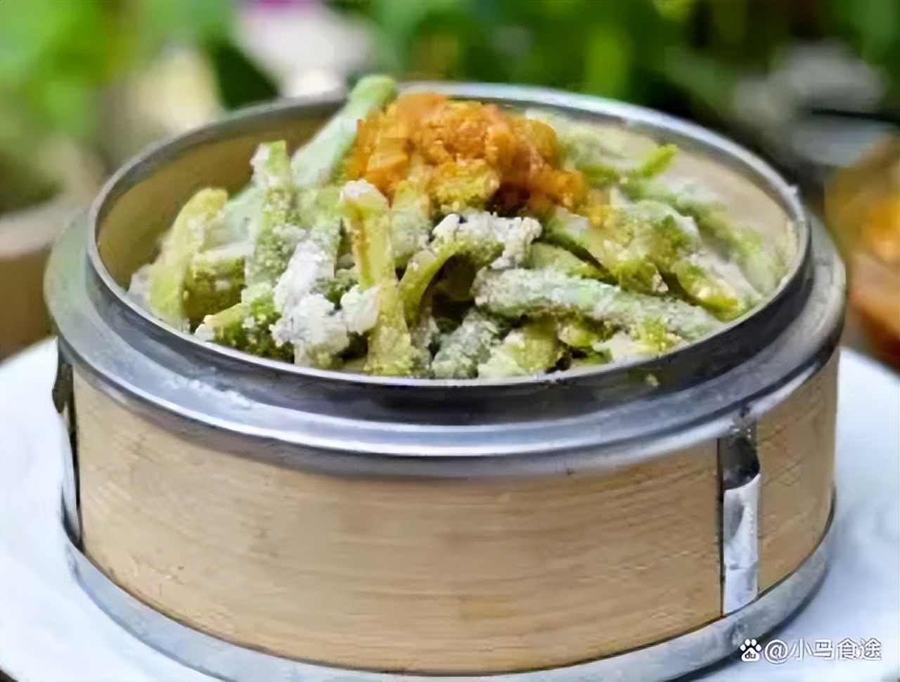 2.准备一个蘸料碗汁,起锅烧油,下入蒜末爆一下,调入蚝油、盐、味精,烹入一品鲜酱油,加入少许香油,搅匀出锅倒入小碗蘸碟中。将蘸料放在盘子中央,即可端上桌蘸食。