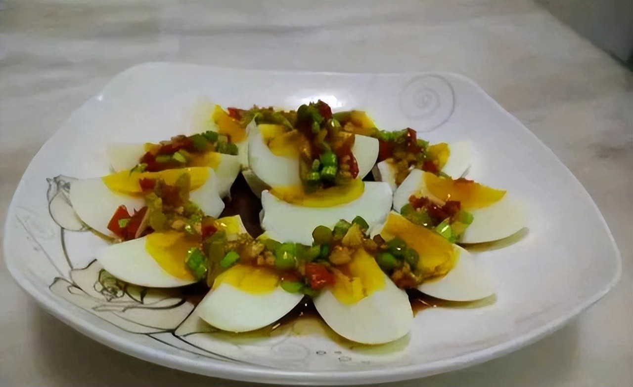 1.鸡蛋煮熟去皮切橘子瓣摆入盘中。