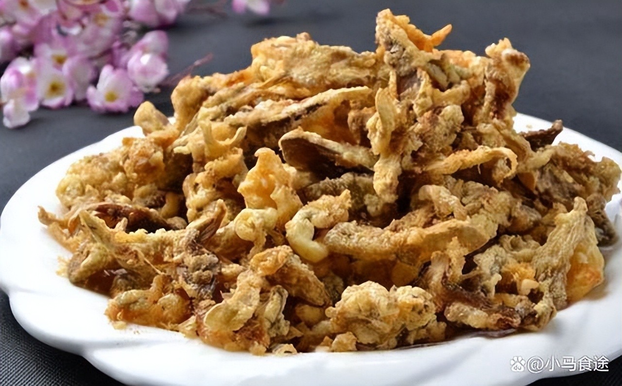 1.茄子去皮切滚刀块,裹上生粉,下入七成热的油锅中炸至表皮金黄,出锅沥油备用。