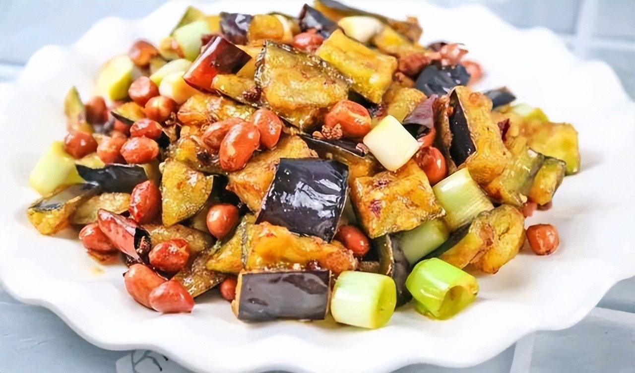 1.茄子洗净切丁,葱白切丁,花生米最好选用盐酥花生米。