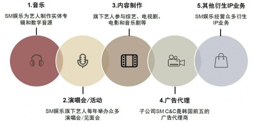 " 地基 " 铺好了,然后通过音乐、演唱会活动、内容制作、广告代理、IP 衍生品等 5 个环节,收钱即可。