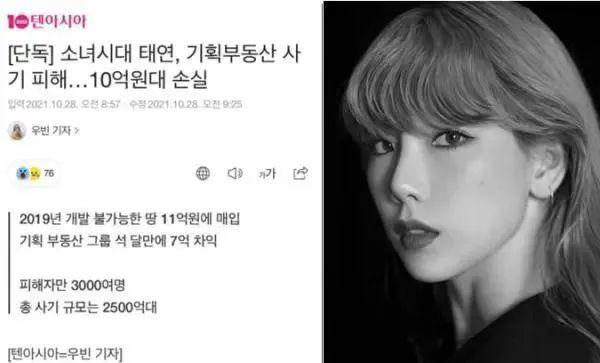 粉丝为其哀叹的还有,房地产公司买入时仅花费了 4 亿韩元,三个月之后便以将近三倍的价格卖给了泰妍。包括泰妍在内,这起诈骗大案受害者多达 3000 人,总案值高达 2500 亿韩元。