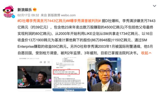 2025 年 2 月 16 日,侄子李成洙直接在视频中罗列李秀满的 " 黑料 "。说他涉嫌贪污公司 7443 亿韩元(约 39 亿元人民币),还曾被判刑过。