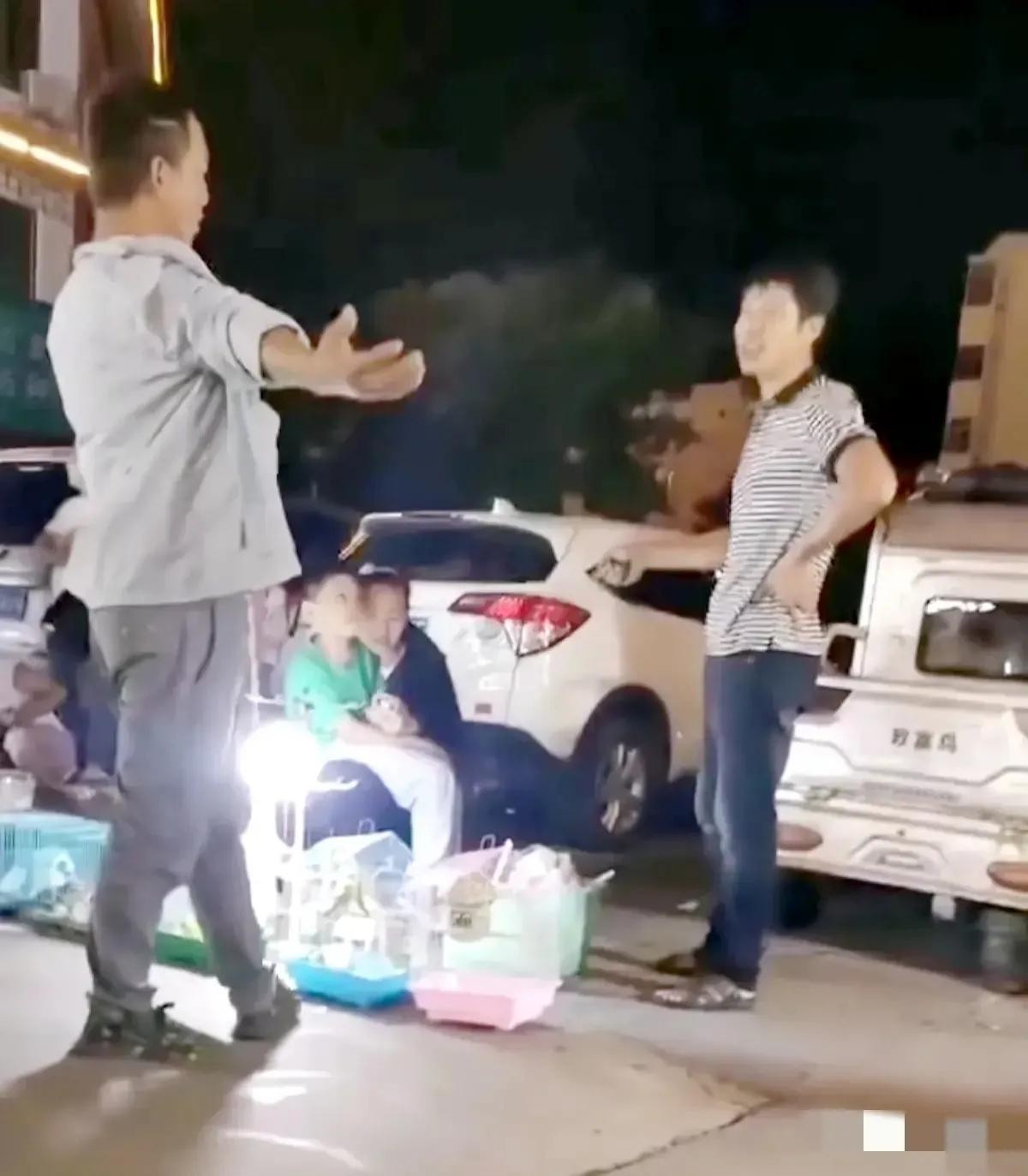 事件是发生在28日晚上,从网络流传的视频可以看到,当时身穿灰衬衫的马某某和身着条纹T恤衫王某某一个卖小动物的摊位旁,在激烈争吵。