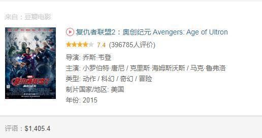 10复仇者联盟2:奥创纪元 Avengers: Age of Ultron,全球票房14.05亿美元