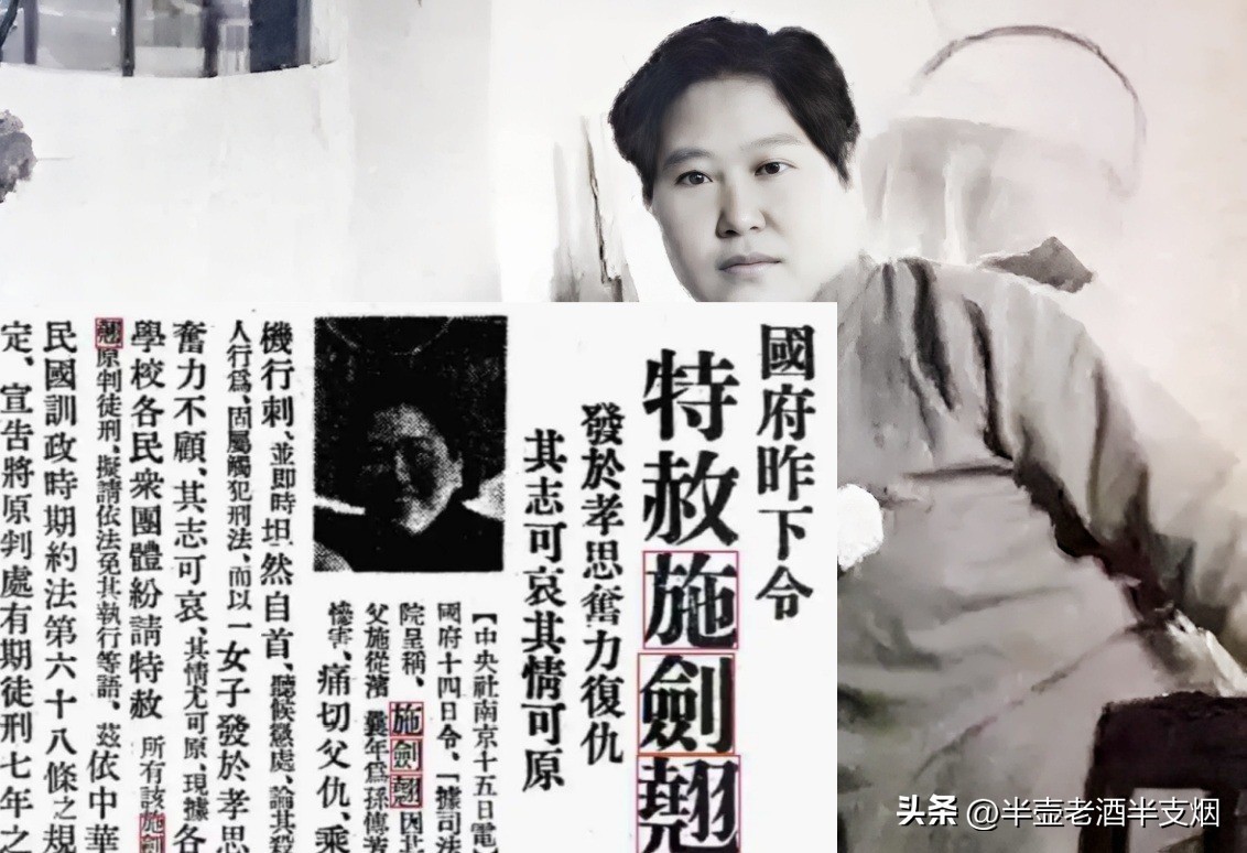 施剑翘1935年11月13日击毙孙传芳之后,一审因为主动自首而被判有期徒刑十年,二审和三审均为有期徒刑七年,1936年10月14日获特赦,这样算来,施剑翘被关押的时间还不到一年。