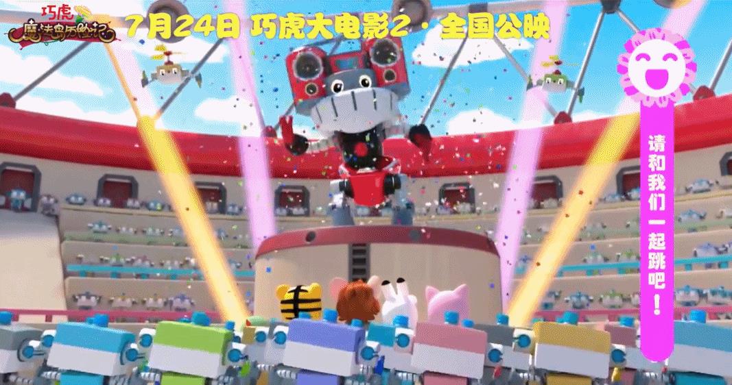 巧虎再次一声令下,整个影院的小朋友都按照他的指令,挥动着小手,为机器人国王“加满动力”。