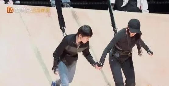 在训练的过程中,吉克隽逸、吕一、周笔畅、 弦子都做了吊威亚的排练,就剩胡静没有排练了,她有点恐惧。