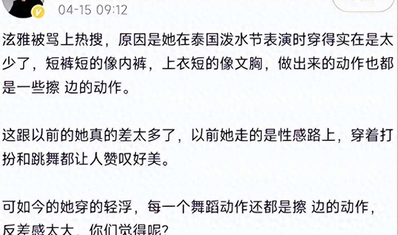 指责她为了博眼球而不顾形象,被认为是低俗和没有羞耻感。尽管受到了批评,但是泫雅并没有改变自己的穿衣风格,她依然在舞台上穿着各种性感火辣的服装,