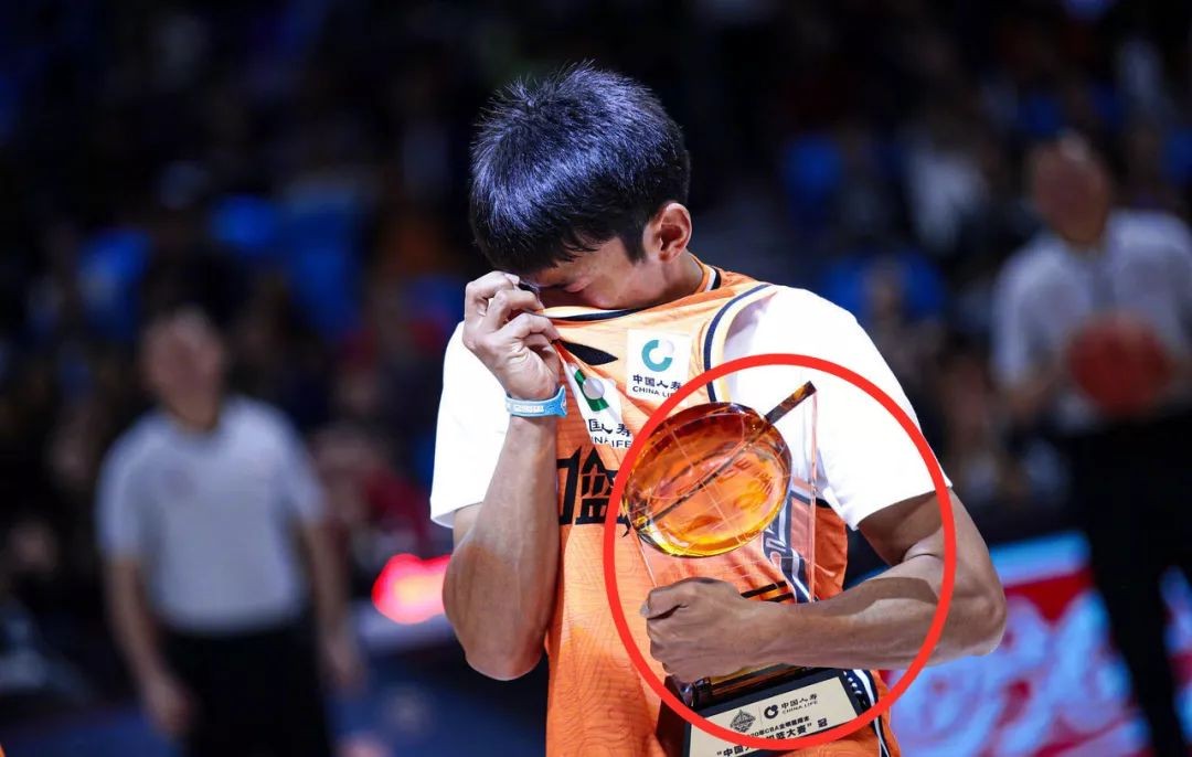 他捧着大赛的奖杯,因为疏忽奖杯上“冠军”的“军”字掉了,这可能正式矣进宏篮球经历的写照,他一个人单打独斗,从未“成军”,他来自草根,来自于大山。