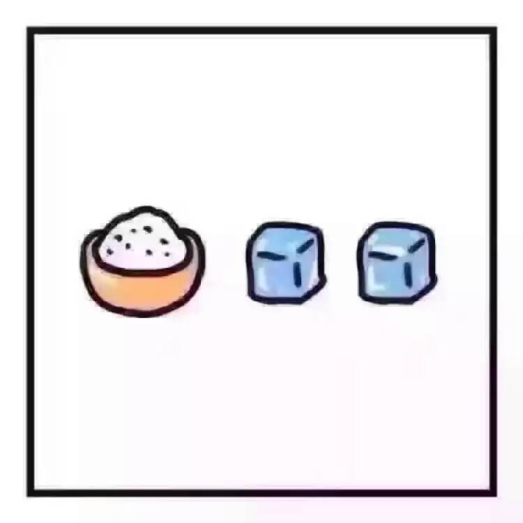 一碗盛满的饭,和两个冰块。这提示的很明显了,一眼就知道。