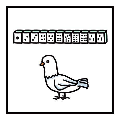 上面是一个胡了的麻将牌,再加上一只鸽子,一个非常优秀的男人。