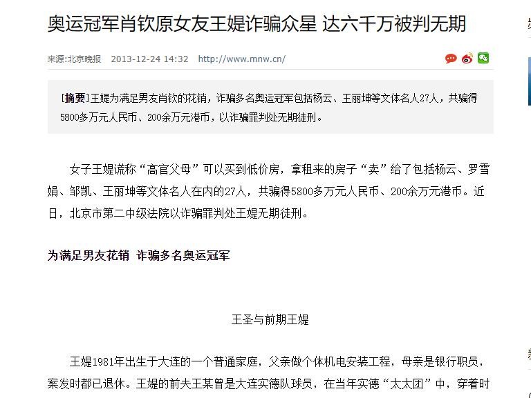 无论是穷人还是富人,大家都想赚点便宜,王媞就是抓住了大家的心里,所以她轻而易举的前前后后从27位奥运冠军和明星手里骗取了6000万元。