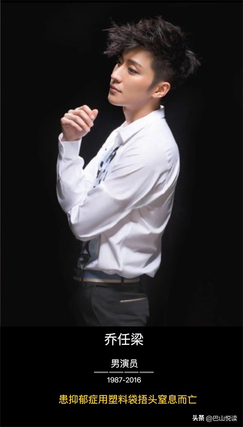 乔任梁常常感到压力大,难以入睡,2016年9月16日晚在家用塑料袋捂头窒息而亡。