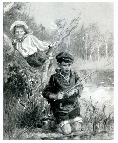 这套插图里,保尔与冬妮娅钓鱼的场景,非常靓眼,构图也非常经典,整个画面,令人过目不忘。