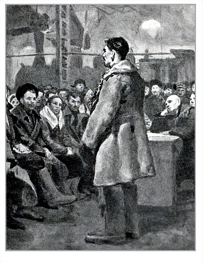9、列宁之后保尔哥哥的表态演讲:如果不是结合小说,我们很难看出这是保尔哥哥的形象,整个画面松散乏力。