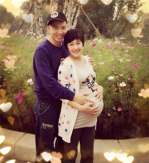 后来,妻子再次怀孕,这一次,他抱着妻子拍下了甜蜜的照片。